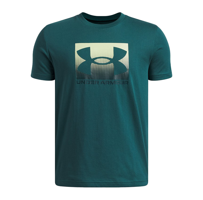 The Under Armour Boxed Sports Kids T-shirt – Green is made from lightweight polyester fabric designed for active wear. This material is soft against the skin while remaining breathable. It also helps wick moisture away, keeping kids dry and comfortable during play. Under Armour’s performance fabrics are known for being quick-drying and lightweight, which enhances everyday comfort.