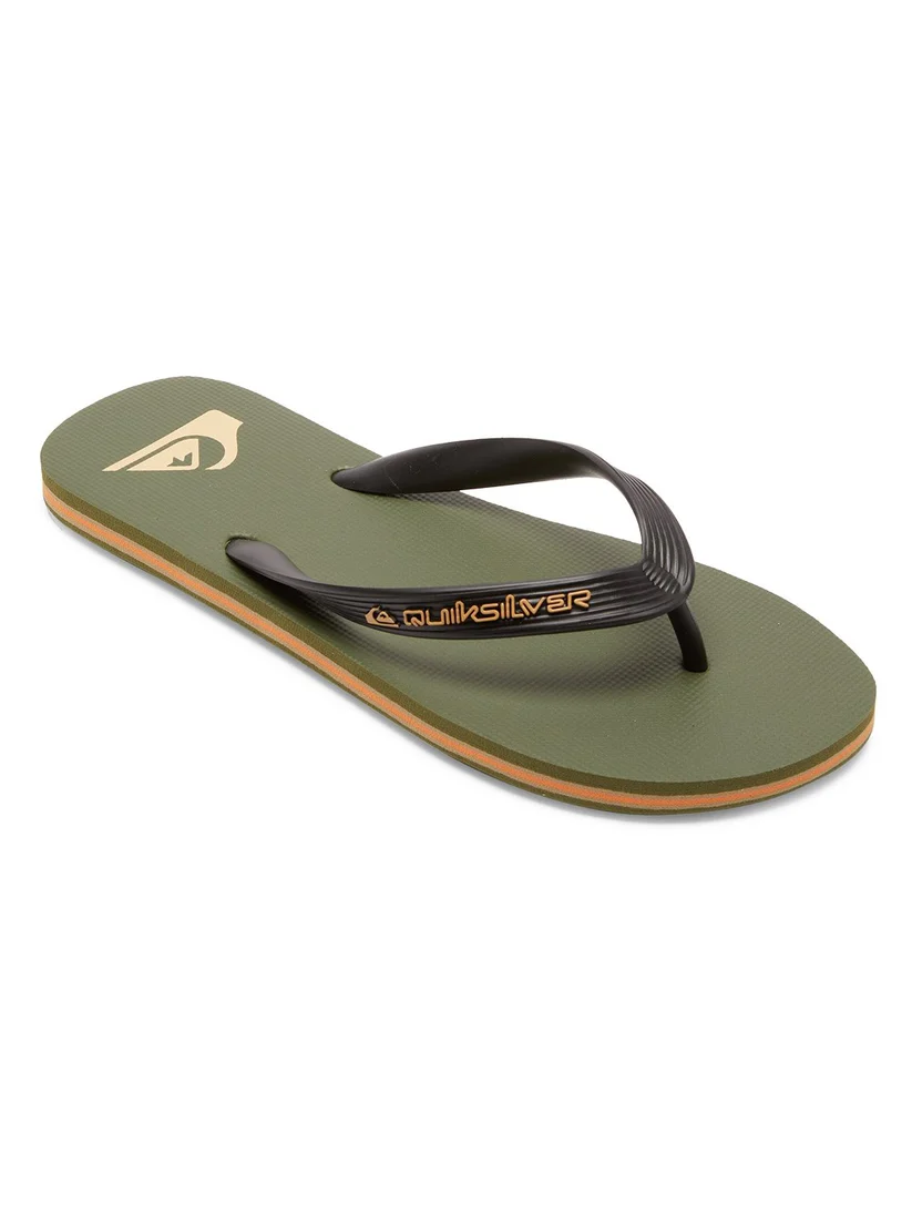 When it comes to easy beach footwear, the Molokai flip-flops are the undisputed kings. Crafted with a clever slip-resistant textured footbed, they feature a bold Quiksilver wordmark logo and a flexible synthetic rubber strap for extra comfort.