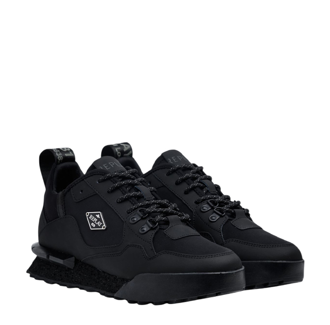 The Replay Field Speed Men’s Sneakers – Black offer a sleek and modern aesthetic that pairs well with a variety of outfits. The all‑black design gives them a clean, understated look that fits easily into casual and streetwear styles.