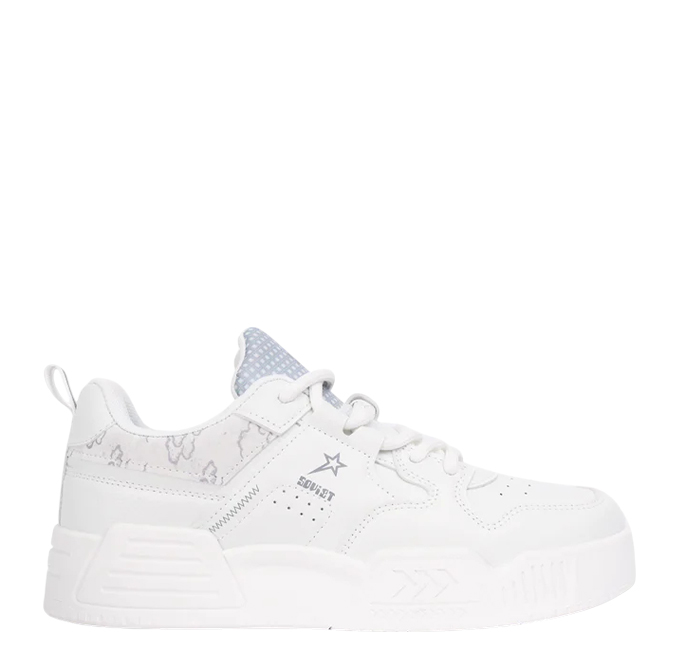 A lace-up closure provides a snug and adjustable fit. The well-structured design offers foot stability, reducing discomfort during extended wear. These sneakers ensure a secure feel with every step.