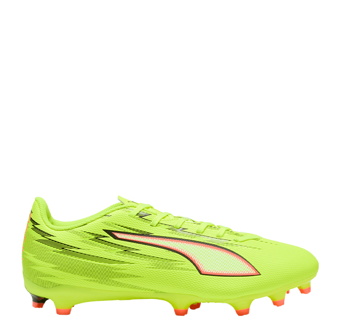 The Puma Ultra 6 Play FG/AG Men’s Soccer Boots – Yellow/Black are performance-focused football boots engineered for acceleration, traction, and versatile play on both firm natural grass and artificial grass surfaces. Whether you’re training or competing, these boots blend comfort, agility, and bold style — making them a strong choice for players who love speed and dynamic movement on the pitch.